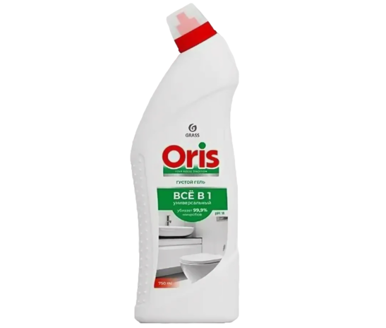 Чистящее средство для санузлов GRASS Oris «Всё в 1» объёмом 750 мл предназначено для чистки и дезинфекции унитазов, ванн, раковин, кафельной плитки, полов и стен.