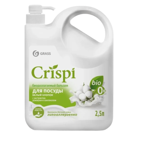 Бальзам для мытья посуды Grass Crispi «Белый хлопок» 2500 мл, используют для ручного мытья посуды. Средство предназначено для удаления жира и остатков пищи с поверхности посуды как в горячей, так и в холодной воде.