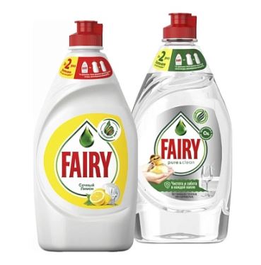 Средство для мытья посуды Фейри эффективно удаляет жир даже в холодной воде. Оно придаёт посуде блеск без разводов.