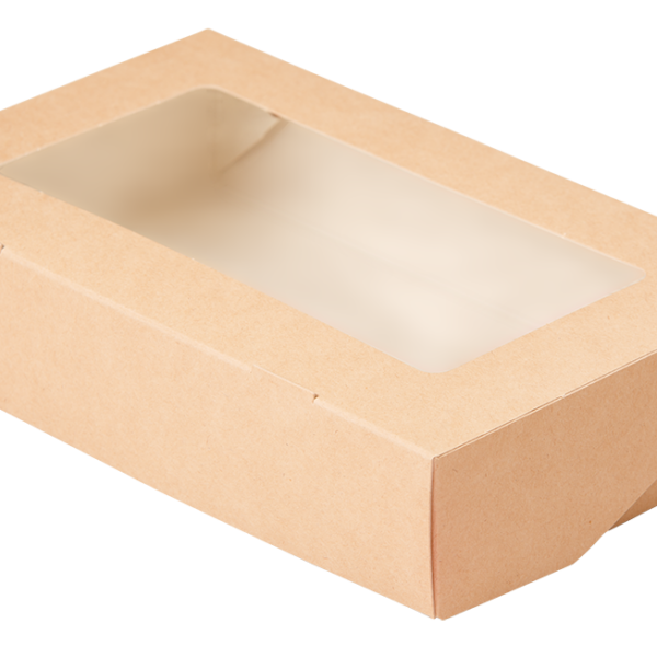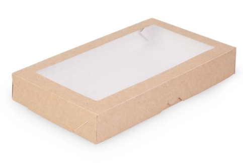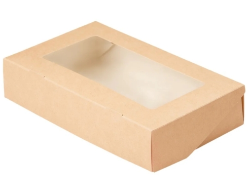 Контейнер из целлюлозного крафт-картона с окном. Размер: 260*150*40мм. Подходят для десертов, суши, роллов, фастфуда, "еды на вынос". Возможно использовать в СВЧ.