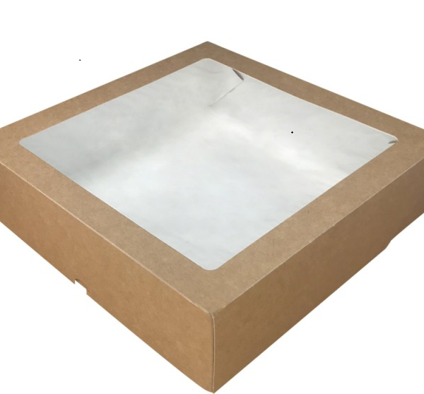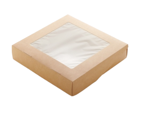 Контейнер из целлюлозного крафт-картона с окном. Размер: 201*202*55мм. Подходят для десертов, суши, роллов, фастфуда, "еды на вынос". Возможно использовать в СВЧ. В коробе 175 шт.