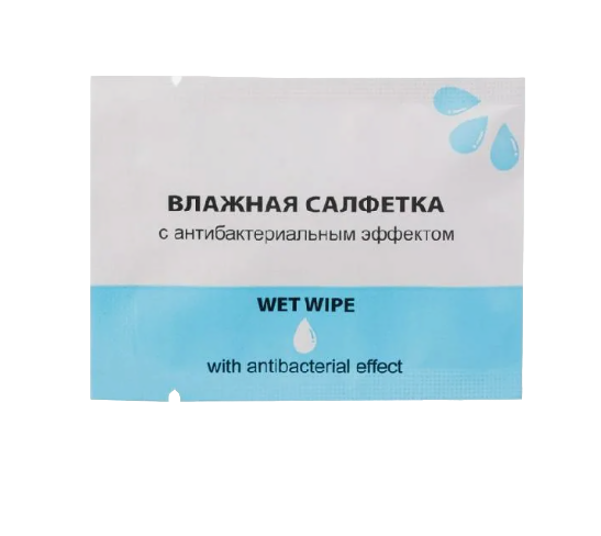 Влажные салфетки с антибактериальным эффектом в индивидуальной упаковке (1000 штук) используют для гигиенической обработки кожи рук, лица и шеи.