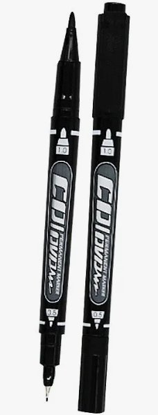 Маркер перманентный двухсторонний 0,5-1мм черный. Используется для работы в офисно-складских помещениях, а также для письма на любых поверхностях: бумага, картон, стекло, пластик, фарфор, дерево и др.