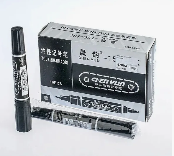 Маркер CHEN YUN перманентный двустор черный 10шт/уп