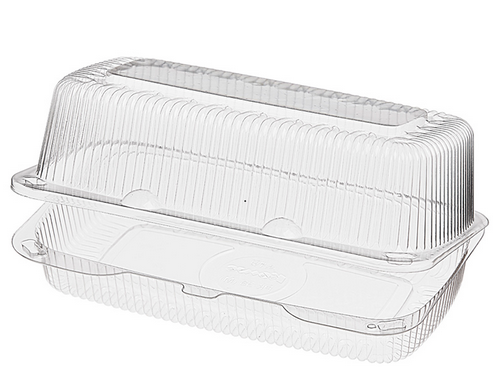 Прозрачный пластиковый контейнер РК-30 М ОПС из ПЭТ 23,6*17*6,5см подходит для упаковки и транспортировки кондитерских изделий, различных полуфабрикатов.