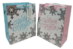 Бумажные подарочные пакеты-сумки новогодней тематики Люкс ламинированные 18×24×8 см используются для упаковки подарков к Новому году.
