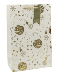 Новогодняя бумажная подарочная сумка-пакет размером 26*32*10см изготовлена из прочного ламинированного картона, имеет надежные веревочные ручки. Сумка идеально подойдет для упаковки подарка к новогоднему празднику!