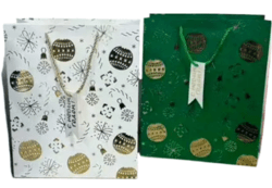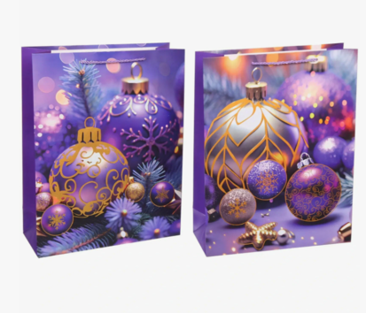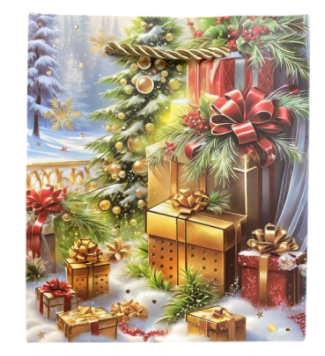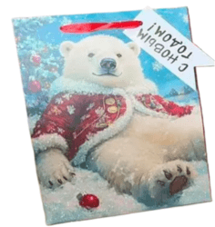 Бумажные подарочные пакеты новогодней тематики "Люкс" размером 37×37×18 см подходят для упаковки больших подарков на Новый год.