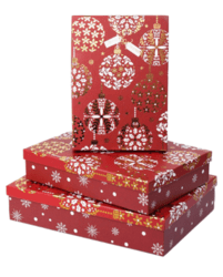 Набор коробок НГ 3в1 прямоугольник Шары на красном 33*23*7/28*20*6/24*17*5