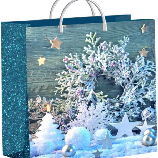 Пакет 300*280+14 НГ мяг.пластик Снежинки на бирюзе /40