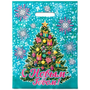 Новогодний пакет с вырубной ручкой, размер 30*40см, плотность 30мк. Пакет служит для упаковки косметических средств, подарков, игрушек. Продается по 50 штук.