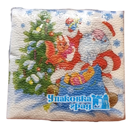 Салфетки бумажные однослойные 100 листов Дед Мороз. Необходимы для банкетов, фуршетов, для оформления праздничной сервировки стола.