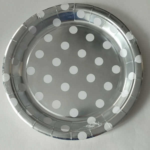 Тарелка Д-180мм картон Люкс Горох серебро Т180 10/2000