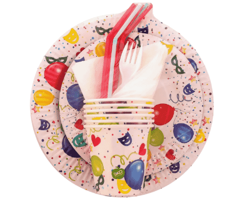 Набор одноразовой картонной посуды Праздничный на 6 персон. В набор входят: тарелки Д-230мм, тарелки Д-180мм, стаканы, вилки, трубочки для коктейля, салфетки. Экологичная посуда добавит настроение торжеству, украсит фуршет, выездное мероприятие, детский праздник.