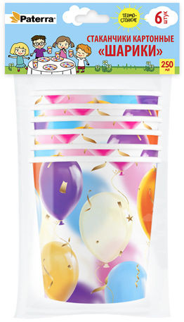 Стакан бумажный 250мл Д-80 Шарики 6шт/уп/27уп Патерра