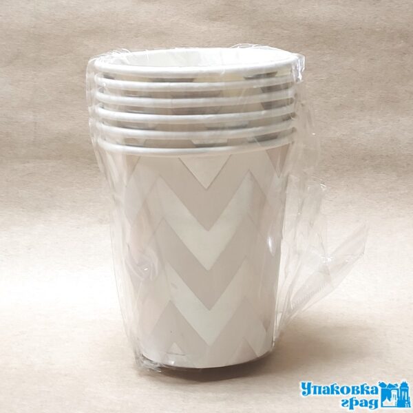 Стакан бумажный 250мл Зиг заг Серебро 6шт МИК