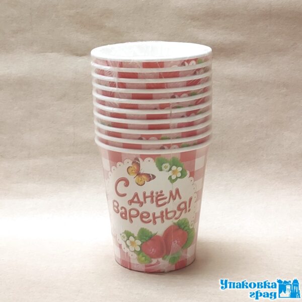 Стакан бумажный 250мл С ДР Клубника 10шт