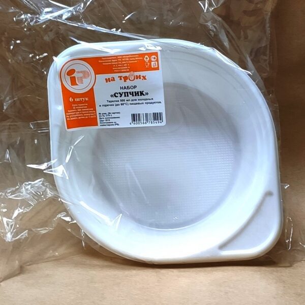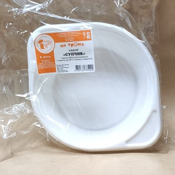 Набор одноразовой посуды "Супчик" 6 штук: тарелка 500мл подходит для холодных и горячих пищевых продуктов. Используется в пунктах быстрого питания, на разных мероприятиях, в походах, на пикниках.