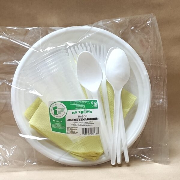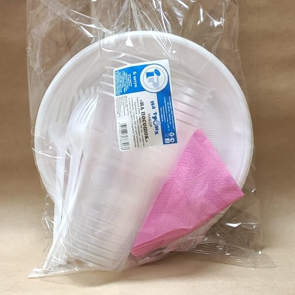 Набор одноразовой посуды «Пикник» на 6 персон (стаканы 200мл, вилки, салфетки, тарелки 165мм) используют для отдыха на природе и корпоративных мероприятий. Набор подходит для холодных и горячих блюд.