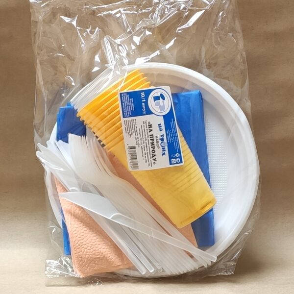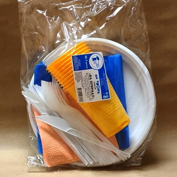 Набор одноразовой посуды "На природу" на 10 человек: тарелка 205мм, стакан цветной 200мл, салфетка, вилка, нож, стакан 100 мл, скатерть 1 шт, зубочистки. Используется для холодных и горячих пищевых продуктов. Подходит для разных мероприятий, пикников, туристических походов.