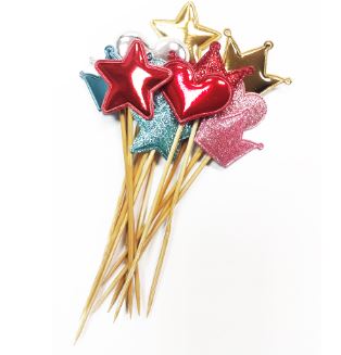 Пики ассорти: Сердце 5шт/Звезда 5шт/Корона 5шт, 15шт/уп, 150уп/кор