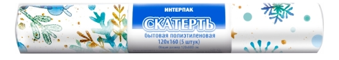 Новогодняя одноразовая скатерть в рулоне. Изготовлена из полиэтилена, размер 120*160см, в рулоне 5 штук (разделяются по перфорации), плотность 35мкм. Станет отличным украшением для праздничного стола.