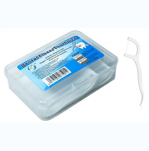 Зубочистки пластиковые с нитью в футляре 30шт белые YX-31 /12/360