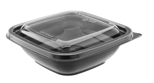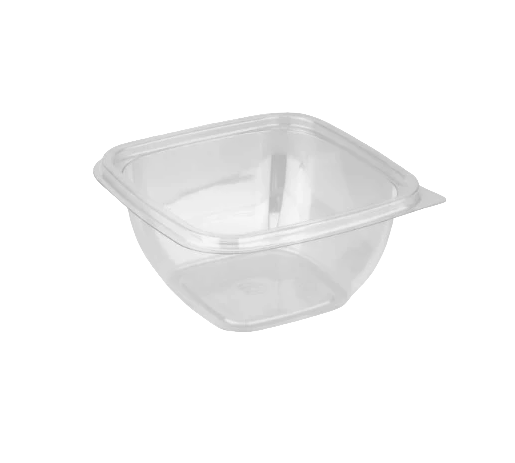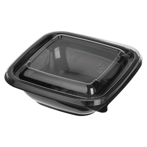 Контейнер объёмом 200 мл с размерами 93×93×48 мм из ПЭТ, в комплекте с крышкой, предназначен для упаковки, перевозки, хранения и заморозки пищевых продуктов. Используют для фасовки салатов, десертов, овощей, солений, холодных закусок.