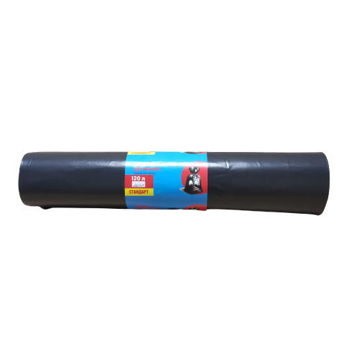 Пакет для мусора черный в рулоне. Объем 120 литров. Количество пакетов в рулоне 20 штук. Идеально подходит для использования в быту, в учреждениях образования, здравоохранения, общественного питания.
