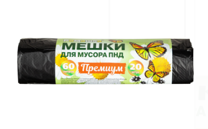 Пакет для мусора черный с ручками. Объем 60 литров. Количество пакетов в упаковке 20 штук. Идеально подходит для использования в быту, в офисах, в учреждениях образования, здравоохранения.