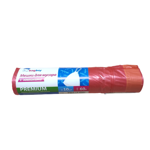 Пакет д/мусора с зав 60л*10шт*30мк ВД Красный 10/30
