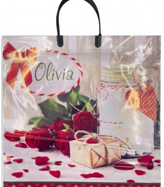 Пакет глянцевый с пластиковой ручкой, размер 40*40*5 см. Красивый плотный пакет подходит для использования в быту и как подарочная упаковка.