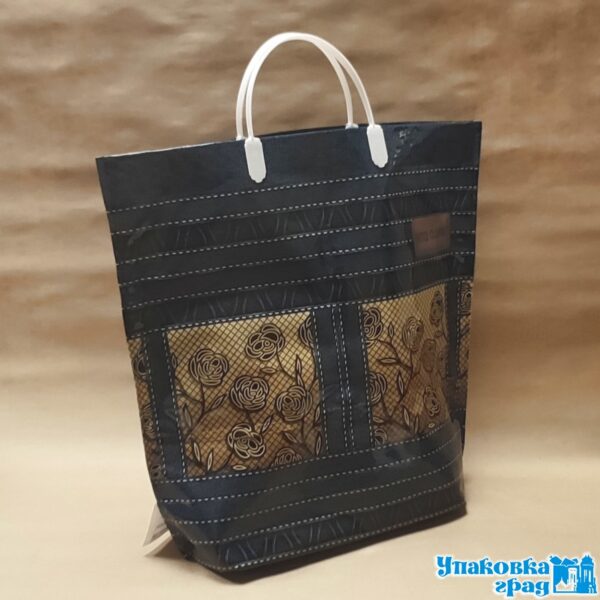 Пакет ламинированный многослойный с оригинальным дизайном. В дно пакета впаяна донная складная вставка, которая усиливает прочность и дает возможность поставить его при необходимости, внутри и снаружи есть пара карманов. Пакет легко сложить и взять с собой в сумочку. Он прочный, надежный, выдерживает содержимое до 20 кг.