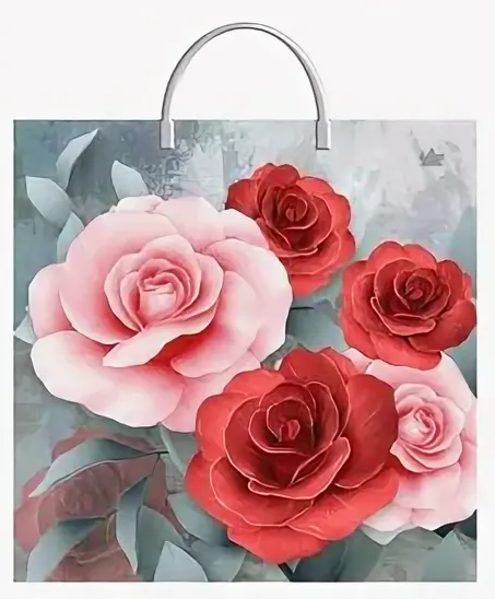 Пакет с пластиковой ручкой, размер 36*35*5 см. Красивый плотный пакет подходит для использования в быту и как подарочная упаковка.