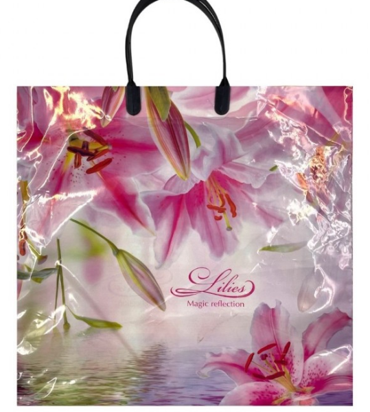 Пакет с пластиковой ручкой, размер 37*35*5 см. Красивый плотный пакет подходит для использования в быту и как подарочная упаковка.
