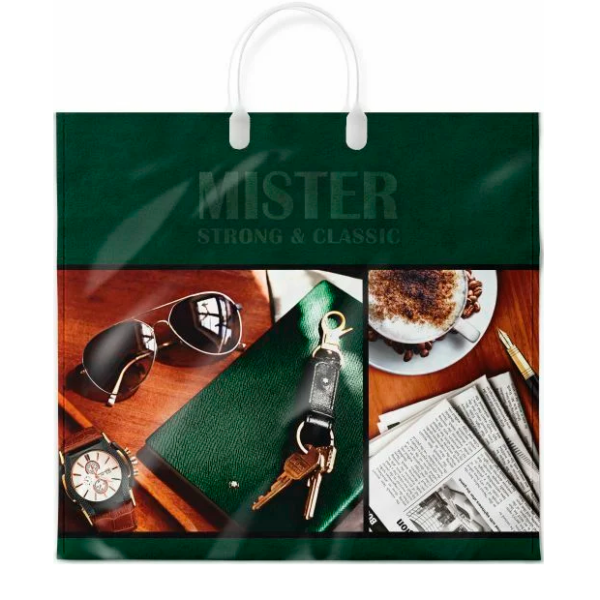 Пакет с пластиковой ручкой, размер 38*44*3 см. Красивый плотный пакет подходит для использования в быту и как подарочная упаковка.