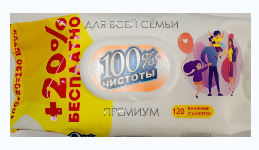120шт Салфетки влажные 100%чистоты PREMIUM Для всей семьи белая /10/