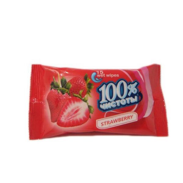 15шт Салфетки влажные 100% чистоты Клубника 140шт/уп