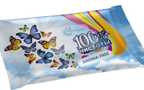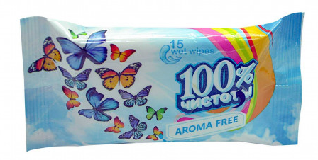15шт Салфетки влажные 100% чистоты без запаха 140шт/уп