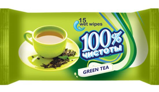 15шт Салфетки влажные 100% чистоты Зеленый чай /140/