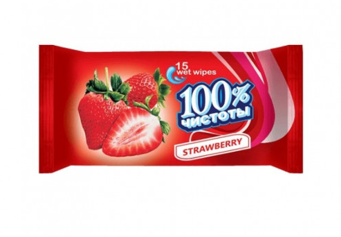15шт Салфетки влажные 100% чистоты Клубника /140/