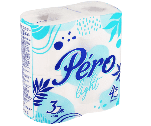 Туалетная бумага "Pero Light " белая трехслойная с перфорацией и тиснением.Обеспечивает мягкость, впитываемость и прочность. Состав: 100% целлюлоза. В упаковке 4 рулона.