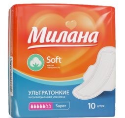 Милана прокладки Ультра тонкие 10шт soft super оранжевый(синий) /54/