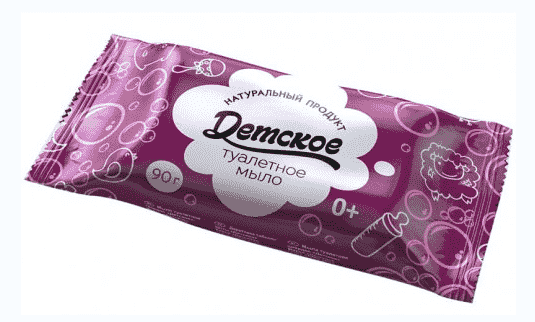Детское туалетное мыло весом 90 г в обёртке «АГРОПРОМ-ЮГ» предназначено для ухода за лицом и телом, рекомендуется с младенческого возраста (возраст 0+).