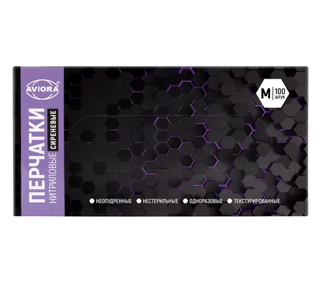 Перчатки нитриловае сиреневые М 3,5г 100шт AVIORA