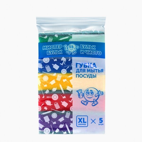 Губка для посуды 5шт ХL Мистер бульк 95/65/28 30шт/уп П