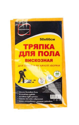 Тряпку для пола размером 50×60 см из вискозы в индивидуальной упаковке используют для уборки помещений, мытья полов и протирания поверхностей.