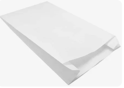 Пакет бумажный белый, размер 140*40*250 мм. Используется для упаковки продуктов питания, бытовой химии, косметики, предметов искусства.