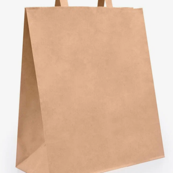 Пакет бумажный крафт с плоскими ручками, размер 320*200*370мм Используется для упаковки и транспортировки различных товаров. Благодаря плотной бумаге, пакет обладает высокой прочностью и отлично держит форму.
