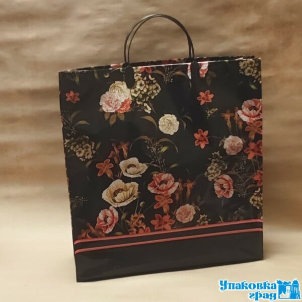 Пакет с пластиковой ручкой, размер 38*35*10 см. Красивый плотный пакет подходит для использования в быту и как подарочная упаковка.